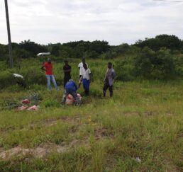 Ich halte an einer kleinen Kreuzung an, die Typen ernten Ananas, daneben steht Faith und verkauft sie.
