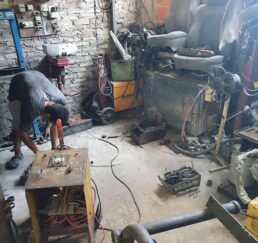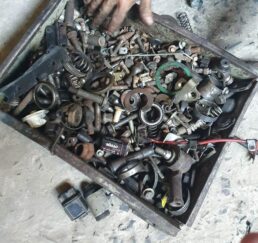 Nach 20km benötigte ich eine Schraube und machte mich bei einem Autohändler auf die Suche. Ich hab sogar eine gefunden in der Kiste.