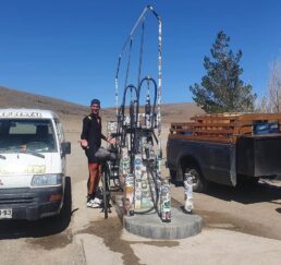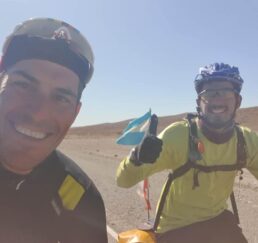 Bei KM 80 sah ich weit vor mir ein langsam bewegendes Ding mit Fahne. Ja endlich ein Bikepacker. Als ich ihn einholte begrüssten wir uns wie alte Freunde. Er sei aus Argentinien und seid 2 Jahren unterwegs, seine 2 Kumpels seien etwas vor ihm. Auch sie lernte ich kennen. Maxi ebenfalls aus Argentinien und der Dritte im Bunde aus Venezuela. Alle 3 sind über einem Jahr auf Reise. Das lustige, sie fahren immer ein paar Kilometer auseinander, jeder sein Tempo. Auch treffen sie sich spontan wieder, fahren ein paar Tage/Wochen zusammen und gehen dann wieder ihren eigenen Weg. Alles via Social Media. Maxi z.b. ist über Chile nach Argentinien gefahren.