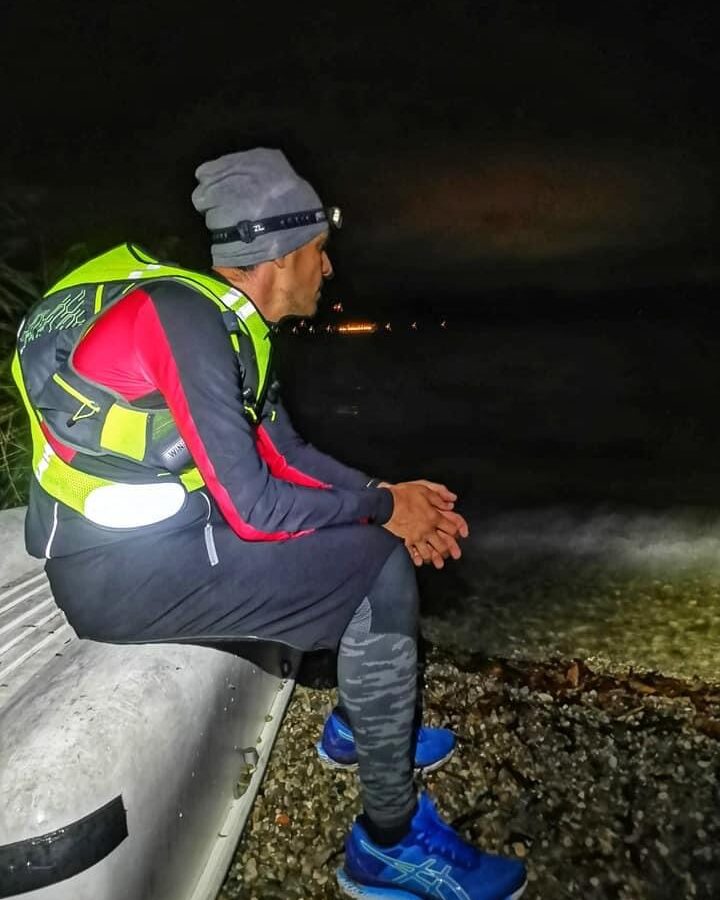 Was zeichnet einen gleichgesinnten Spinner aus? Der steigt während seiner Laufpause (bei Regen!!!) auf‘s Fahrrad und begleitet den Läufer.