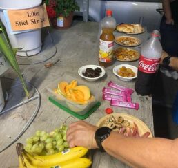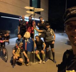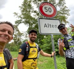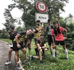 In Bad Zurzach der erste kurze Stop bei „Papa Moll“ danach weiter. Die Macht der sozialen Medien zeigte sich wieder mal ganz krass. Janine Engel meldete sich bei mir und fragte ob wir eine Verpflegung brauchen könnten. Ja klar, aber um 04.00 Uhr Morgens. Sie stand in Weiach kurz vor der Marathondistanz. Ein wahrer Engel. Genau im richtigen Moment. Die Tropennacht liess uns mächtig schwitzen und Getränke sind schwer, doch ihr Buffet war der HAMMER