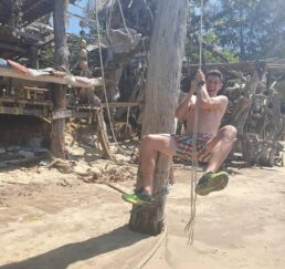 Nach 1h an der Sonne hatte ich genug, ich wollte die Insel erkunden, zu Fuss machte ich mich auf den Weg, vorbei an selbstgebauten Hütten mit chillenden Menschen aus der ganzen Welt.